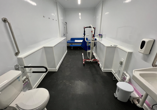 These trailers are a great solution for towns, parks districts, and/or cities to purchase for public use when there are no suitable options to install a permanent adult changing station in a nearby building. These standalone family restrooms are outfitted with universally-accessible equipment.